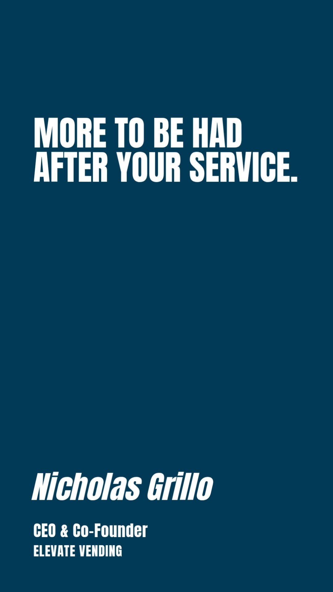 At Elevate Vending, our motto is simple, “a rising tide lifts all boats.” We are rooted in the idea that by helping one another, we can help everyone. By offering healthy, fresh, and local foods, we are changing the industry one meal at a time. Through our dedication to local businesses and veterans alike, our mission is simple, give back to those who give it all. Nourishing your body, your soul, your community.